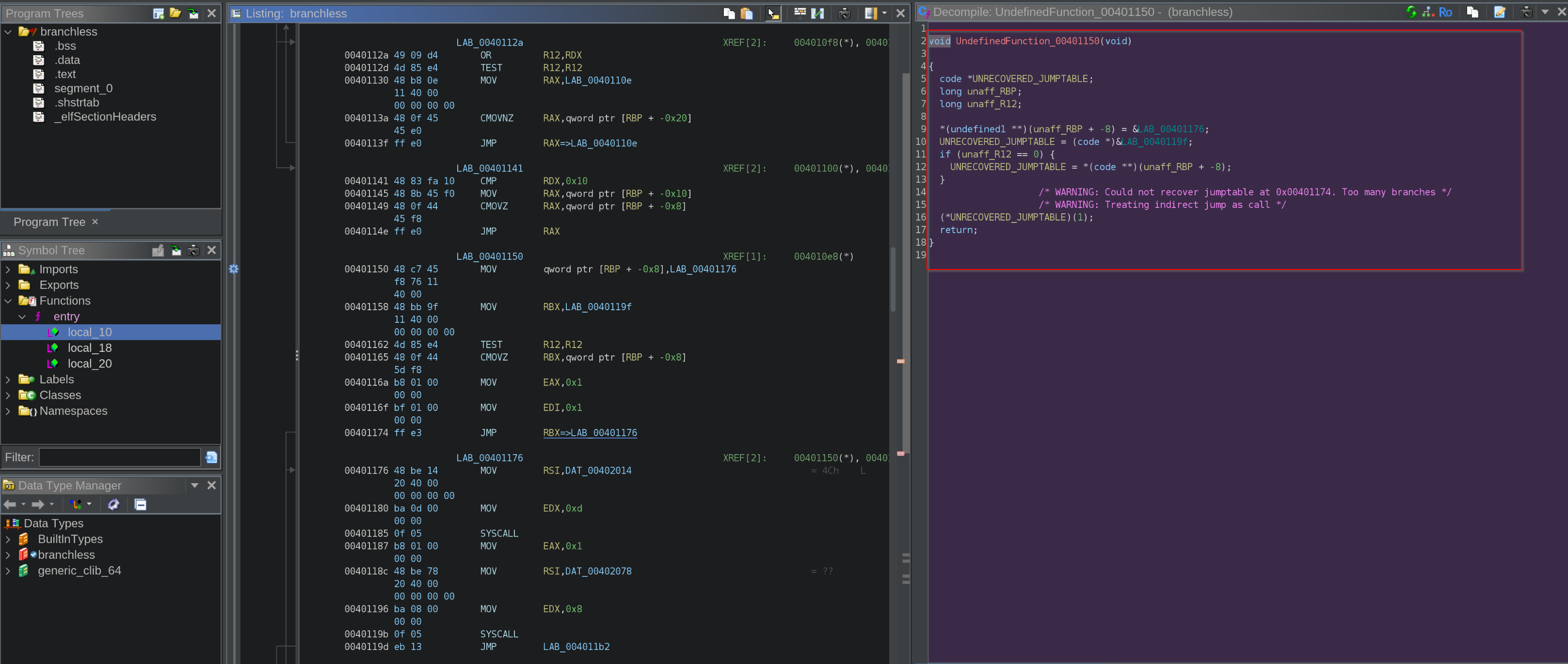 - Static analyzers struggle because the jump target could vary every run (will show the decompiled behavior of the Ghidra).